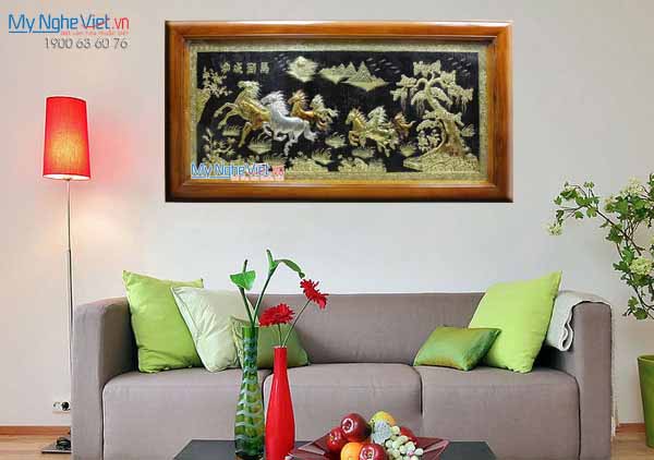 - Tranh bát mã thường được đặt trang trọng ở phòng khách, đặt theo hướng ngựa quay đầu vào trong nhà với ý nghĩa mang tài lộc, may mắn, thành công trở về, tránh treo theo hướng ngược lại.